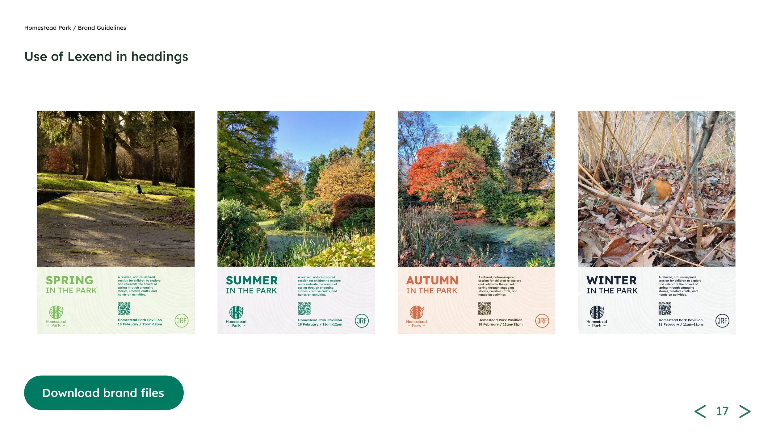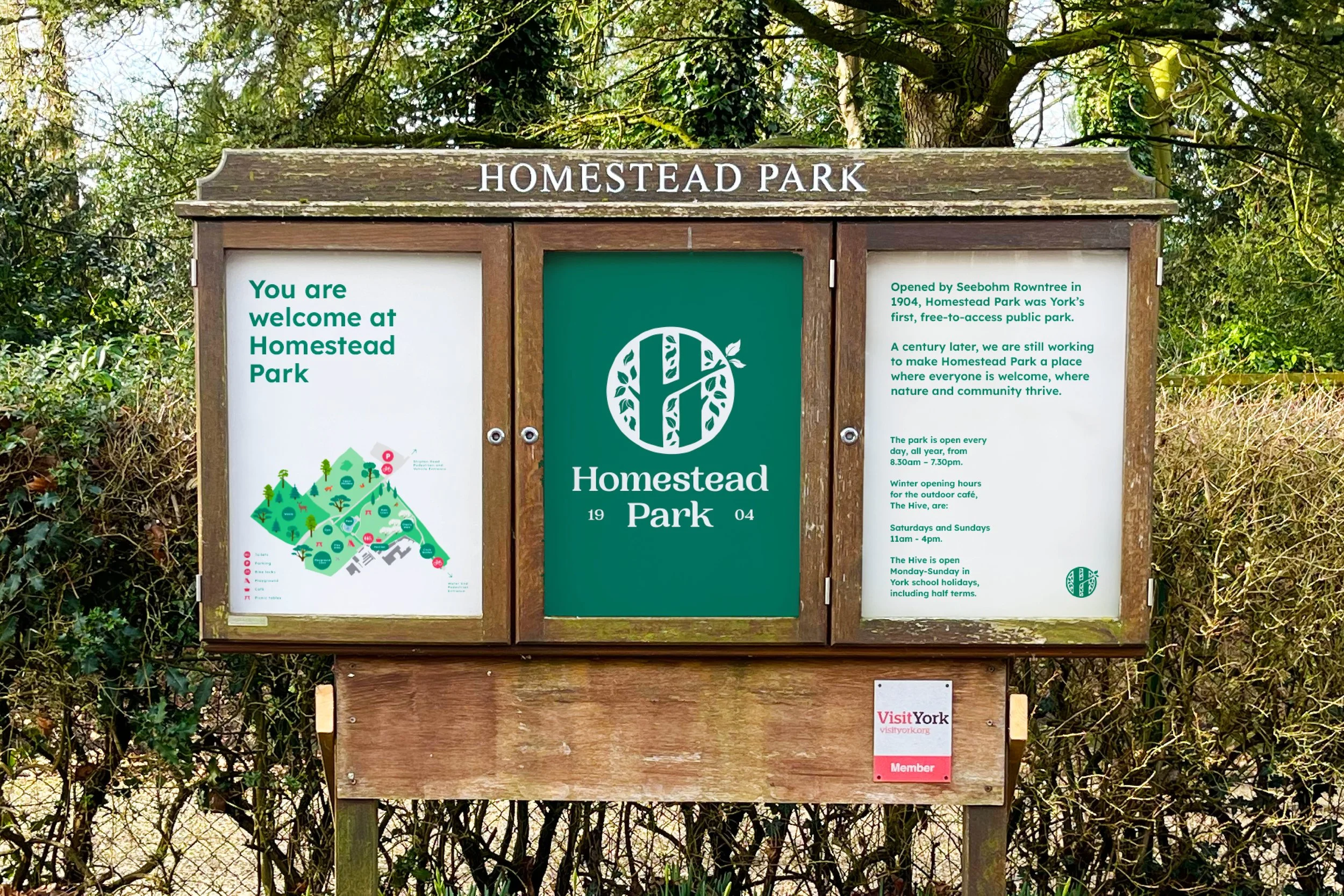Homestead Park is York’s first public park and a much-loved green space with real historical and community significance. When the Joseph Rowntree Foundation asked us to rethink the park’s brand, we started by listening. We led public engagement sessions and surveys to understand what regular visitors value most, alongside discovery workshops with the Homestead gardening team and the wider JRF team. It was important that the new identity reflected not just the park itself, but the people who care for it and use it every day.